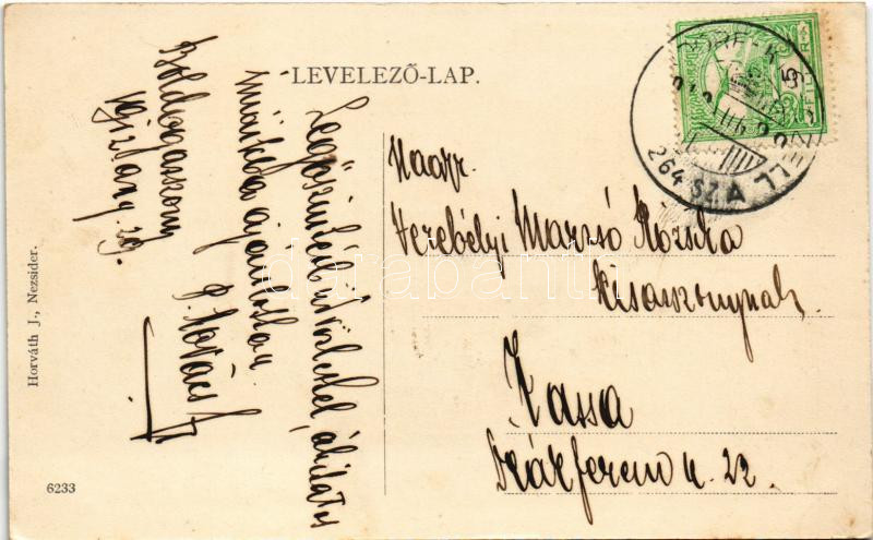 Beschreibung: 1912 Boldogasszony, Fertőboldogasszony, Frauenkirchen; Kegytemplom. Horváth J. kiadása / Gnadenkirche / pilgrimage church + "PARNDORF - KIS-CZELL 264. SZ. A" vasúti mozgóposta bélyegző (fl)