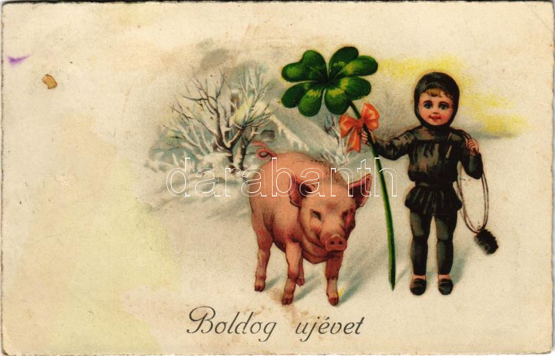 1933 Boldog újévet! Kéményseprő és malac / New Year greeting, chimney ... https://www.darabanth.com/de/454-Fernauktion/454.0/Ansichtskarten/GruC39Fkarten-Feste~1000110/1933-Boldog-ujevet-Kemenysepro-es-malac-New-Year-greeting-chimney-sweeper-and-pig-LP-239~II2950240