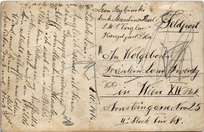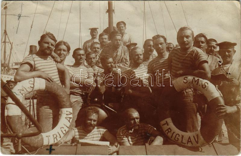 1914 SMS TRIGLAV Osztrák-magyar Haditengerészet Tátra osztályú romboló... https://www.darabanth.com/de/454-Fernauktion/454.0/Ansichtskarten/Kriegsschiffe~1000083/1914-SMS-TRIGLAV-Osztrak-magyar-Haditengereszet-Tatra-osztalyu-rombolo-matrozai-a-mentoovek~II3025632