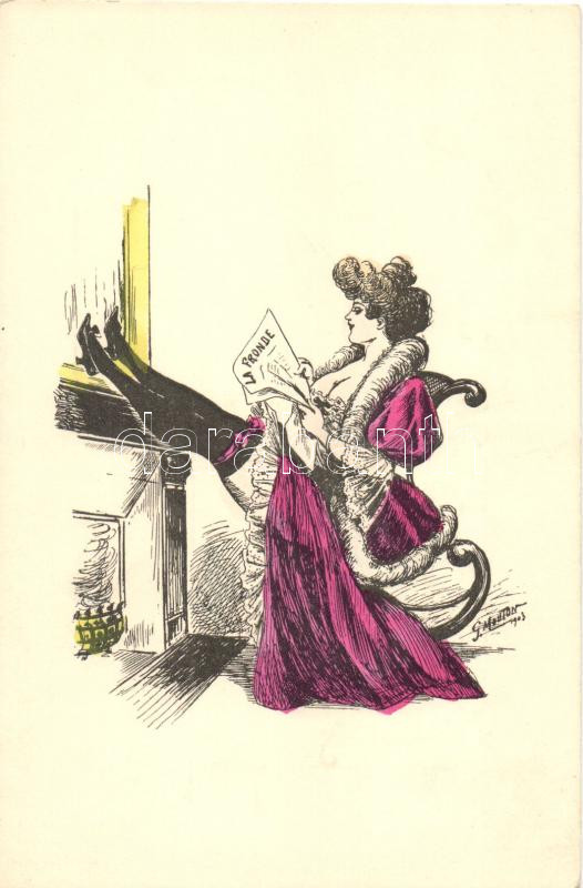 Gently erotic lady reading "La Fronde", the French feminist ... https://www.darabanth.com/de/454-Fernauktion/454.0/Ansichtskarten/Kunstlerkarten~1000097/Gently-erotic-lady-reading-La-Fronde-the-French-feminist-newspaper-s-Georges-Mouton~II1310287