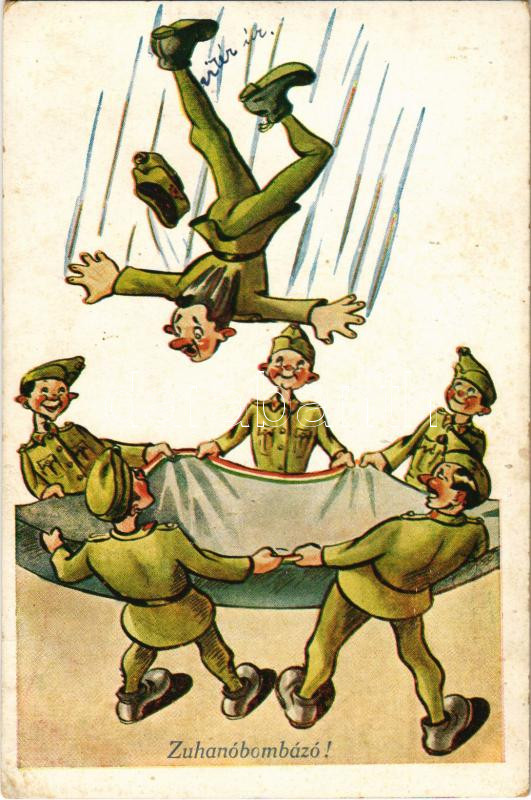 Beschreibung: 1942 Zuhanóbombázó! Második világháborús magyar katonai humor / WWII Hungarian military humour art postcard (EK)