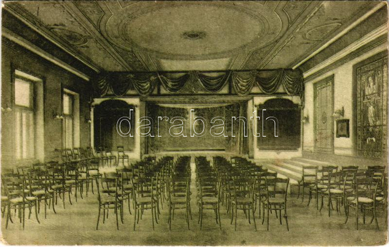Eperjes, Presov; Az Angolkisasszonyok egri intézetének díszterme és színpadja. Divald Károly Fia kiadása / Sisters of Loreto institute, ceremonial hall and stage (EB)