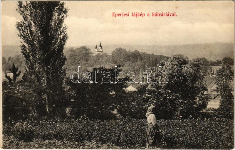 Beschreibung: Eperjes, Presov; Tájkép a kálváriával. Divald 1908. / calvary (fl)