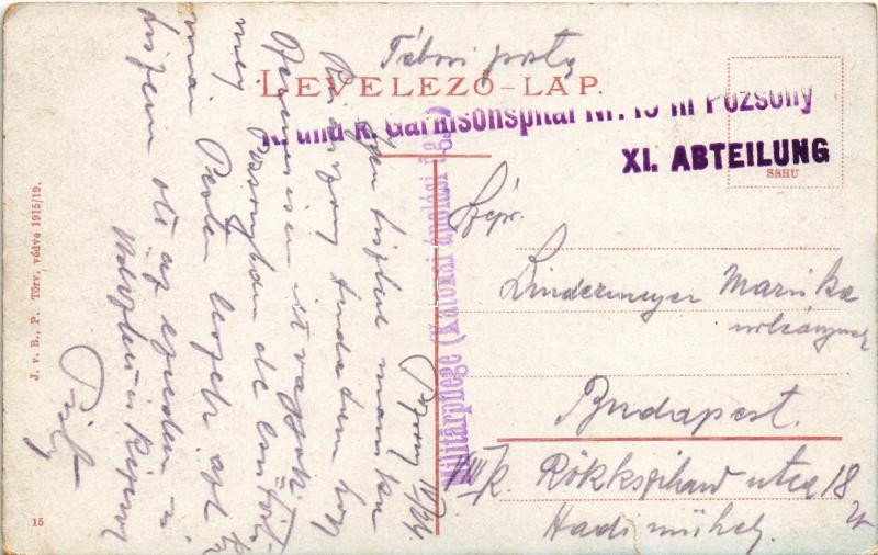 Beschreibung: Pozsony, Pressburg, Bratislava; vár, LUITPOLD oldalkerekes vontató gőzhajó / castle, Hungarian sidewheeler steam tug + "Katonai Ápolási Ügy"