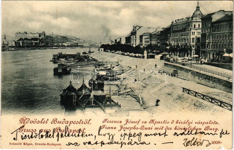 Beschreibung: 1899 (Vorläufer) Budapest V. Ferenc József rakpart és a királyi várpalota (b)