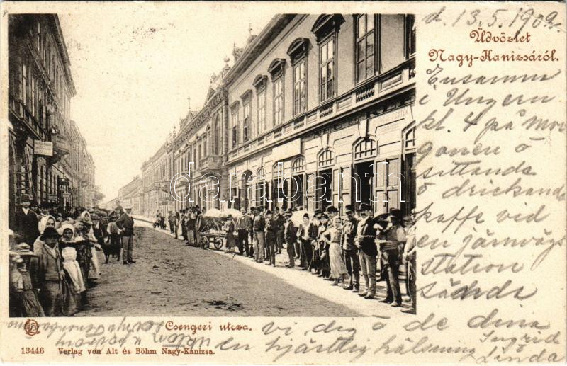 Beschreibung: 1902 Nagykanizsa, Csengeri utca, üzletek. Alt és Böhm kiadása (EK)
