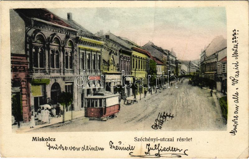 1905 Miskolc, Széchenyi utca, villamos, Langer Sámuel üzlete, könyvnyo... https://www.darabanth.com/de/454-Fernauktion/454.0/Ansichtskarten/Ungarn~1000005/1905-Miskolc-Szechenyi-utca-villamos-Langer-Samuel-uzlete-konyvnyomda-fa~II3027063