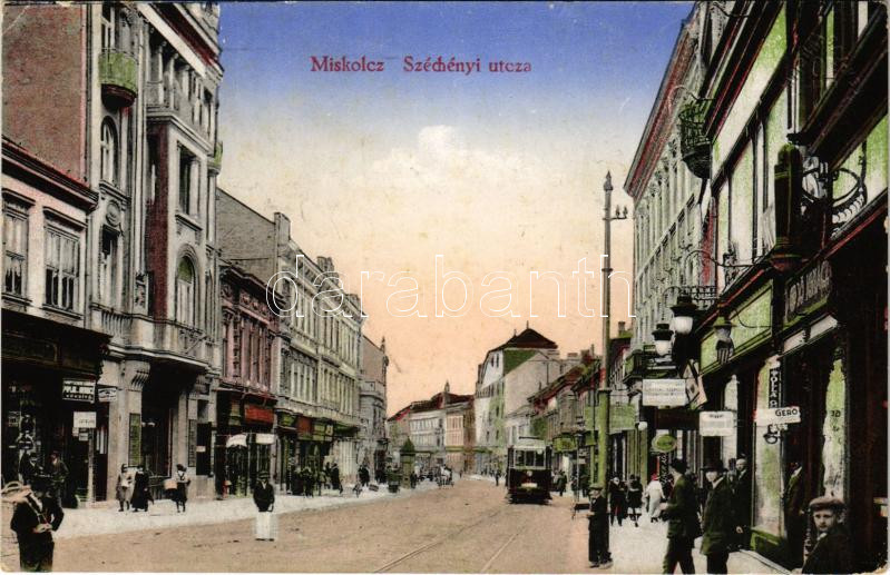 1915 Miskolc, Széchenyi utca, villamos, Gerő Ignác üzlete (EK) https://www.darabanth.com/de/454-Fernauktion/454.0/Ansichtskarten/Ungarn~1000005/1915-Miskolc-Szechenyi-utca-villamos-Gero-Ignac-uzlete-EK~II3027062