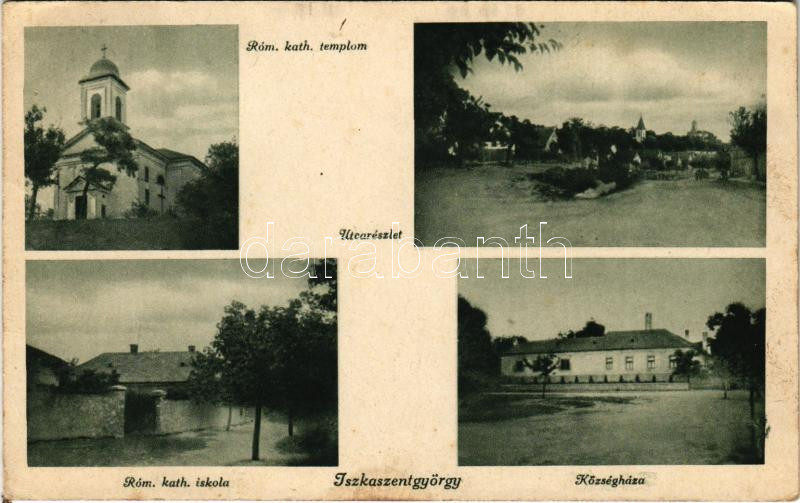 1942 Iszkaszentgyörgy, Római katolikus templom és iskola, községháza, ... https://www.darabanth.com/de/454-Fernauktion/454.0/Ansichtskarten/Ungarn~1000005/1942-Iszkaszentgyorgy-Romai-katolikus-templom-es-iskola-kozseghaza-utca-EK~II3025997