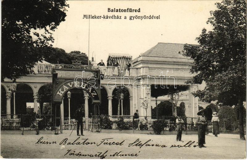 Beschreibung: Balatonfüred, Milleker kávéház és étterem a gyönyördével (terasz gyönyörű kilátással). Koller Károly utóda kiadása