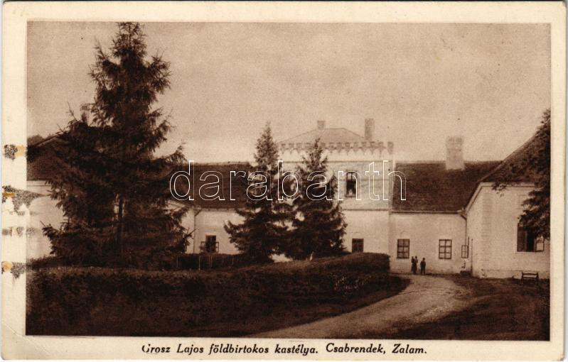 Csabrendek (1950-ig Zala vármegyéhez tartozott), Grosz Lajos földbirto... https://www.darabanth.com/de/454-Fernauktion/454.0/Ansichtskarten/Ungarn~1000005/Csabrendek-1950-ig-Zala-varmegyehez-tartozott-Grosz-Lajos-foldbirtokos-kastelya-EK~II3027242
