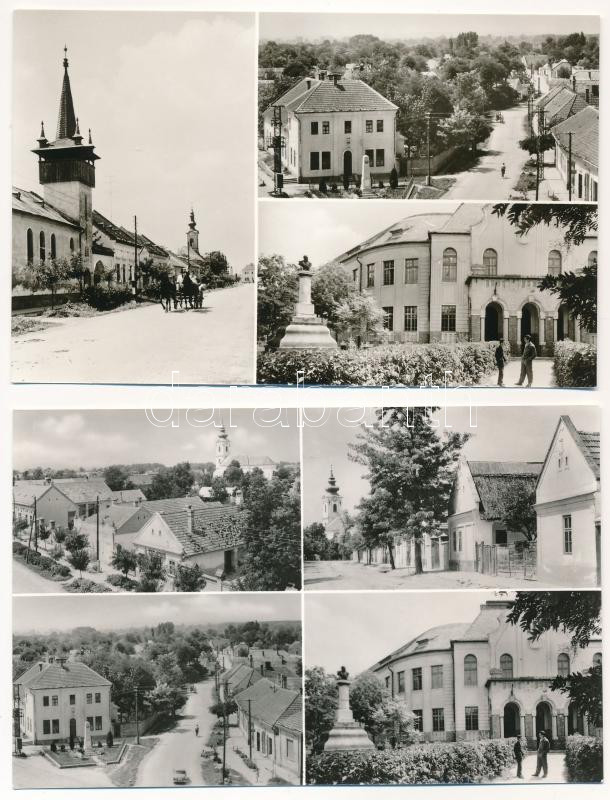 Beschreibung: Dunapataj - 4 db modern Képzőművészeti Alap képeslap (Római katolikus templom, Vasút utca, hősök szobra,