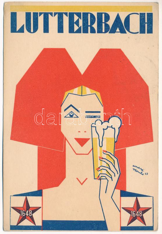 1928 Brasserie de Lutterbach S.S. (Haut-Rhin), Biere de Réputation Mondiale / Francia sörgyár reklámja / French brewery, beer advertisement. Art Deco s: André Stouls ( (EK)