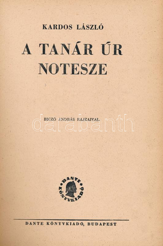 Kardos László: A tanár úr notesze. Biczó András rajzaival. Bp.,1947,Da... https://www.darabanth.com/de/454-Fernauktion/454.0/Bucher/Bucher-Andere-kuriositaten~1500035/Kardos-Laszlo-A-tanar-ur-notesze-Biczo-Andras-rajzaival-Bp-1947-Dante-Kiadoi-felvaszon~II2997155