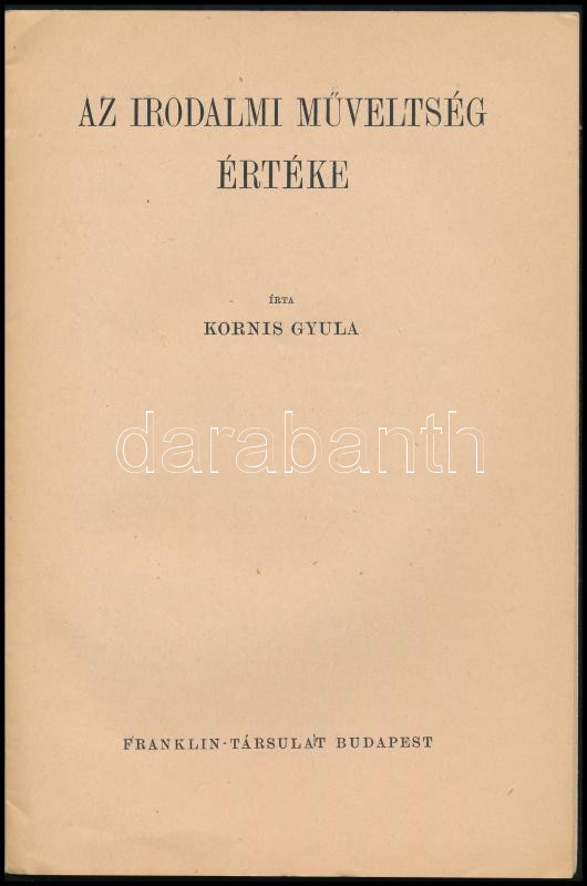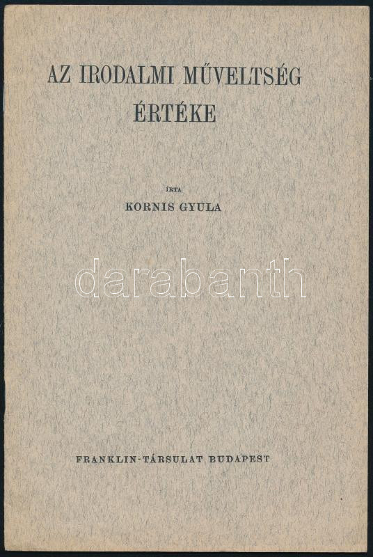 Kornis Gyula: Az irodalmi műveltség értéke. Bp.,én.,Franklin, 24 p. Ki... https://www.darabanth.com/de/454-Fernauktion/454.0/Bucher/Bucher-Architektur-Kunst~1500036/Kornis-Gyula-Az-irodalmi-muveltseg-erteke-Bp-en-Franklin-24-p-Kiadoi-papirkotes-plusKor~II3028010