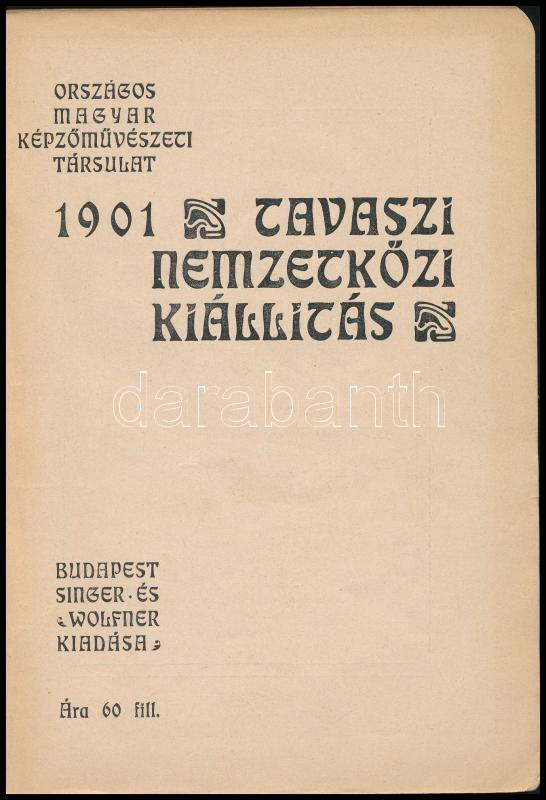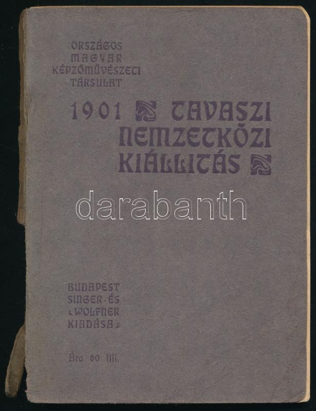 Országos Magyar Képzőművészeti Társulat - Tavaszi Nemzetközi Kiállítás 1901. (Kiállítási katalógus). Bp., 1901, Singer és Wolfner. Gazdag egészoldalas képanyaggal illusztrálva, hirdetésekkel, egy kihajtható térképpel. Kiadói papírkötés, sérült, a hátsó borító hiányzik, belül a lapok jó állapotban.