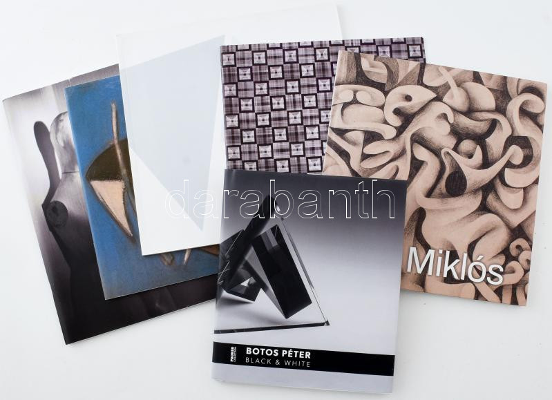 Vegyes művészeti könyvtétel, 6 db: Botos Péter. Black & White. Bp., 2021, Pauker Collection. Kiadói kartonált papírkötés, kiadói papír védőborítóban.; Sas Miklós. Szerk.: Pinczehelyi Márk, Sas Miklós. Pécs, 2023., Zsdrál Art. Kiadói kartonált papírkötés.; Jenei Anita. Pécs,én., Zsdrál Art. Kiadói papírkötés.; Gulyás Andrea: Tömböktől a terekig. hn.,én., Andig. Kiadói papírkötés.; Soltra. Pécs,én., Zsdrál Art. Kiadói papírkötés.; Szabó Zsolt - Isparomar: Give me a Soul. Szerk.: Zsdrál Márkó. Pécs,én., Zsdrál Art. Kiadói papírkötés, a borító egyik sarkán sérüléssel.;