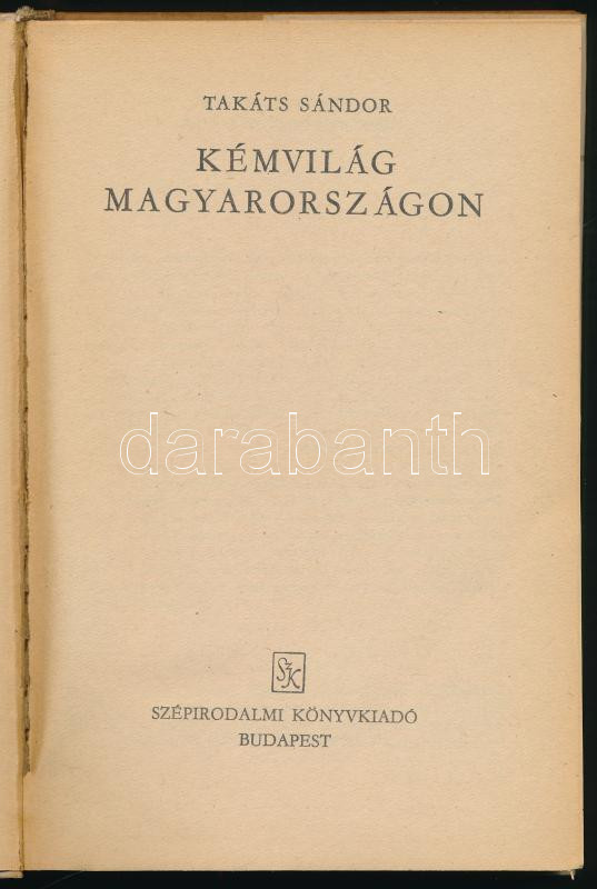 Takáts Sándor: Kémvilág Magyarországon. Bp.,1980. Szépirodalmi. Kiadói... https://www.darabanth.com/de/454-Fernauktion/454.0/Bucher/Bucher-Geschichte~1500018/Takats-Sandor-Kemvilag-Magyarorszagon-Bp-1980-Szepirodalmi-Kiadoi-egeszvaszonkotesb~II3023066