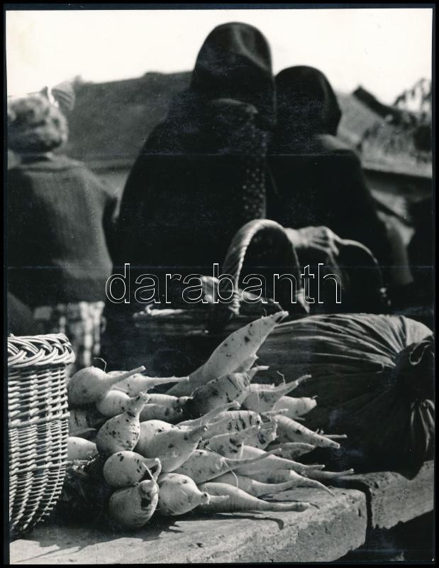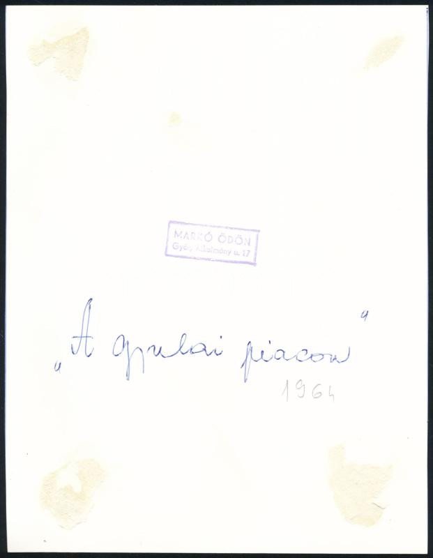 1964 Markó Ödön (1920-1984) győri fotóművész hagyatékából vintage fotóművészeti alkotás (A gyulai piacon), pecséttel jelzett, ezüst zselatinos fotópapíron, 19,8x15,2 cm