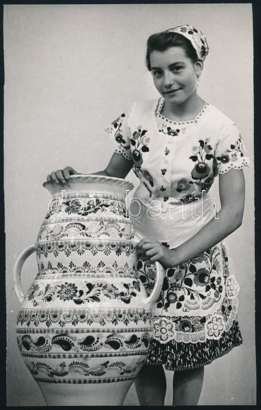 1972 Népviseletbe öltözött lány óriási kerámiaedénnyel, sajtófotó, a h... https://www.darabanth.com/de/454-Fernauktion/454.0/Fotografie/Foto~500023/1972-Nepviseletbe-oltozott-lany-oriasi-keramiaedennyel-sajtofoto-a-hatoldalon-felirato~II3025401