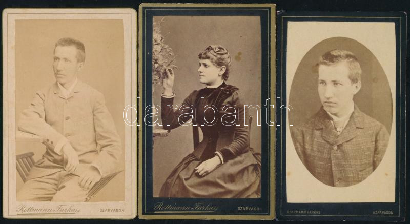 Beschreibung: cca 1880 Szarvas, Rottmann Farkas fényképész műtermében készült portrék, 3 db vizitkártya, 10,5x6,5 cm körül