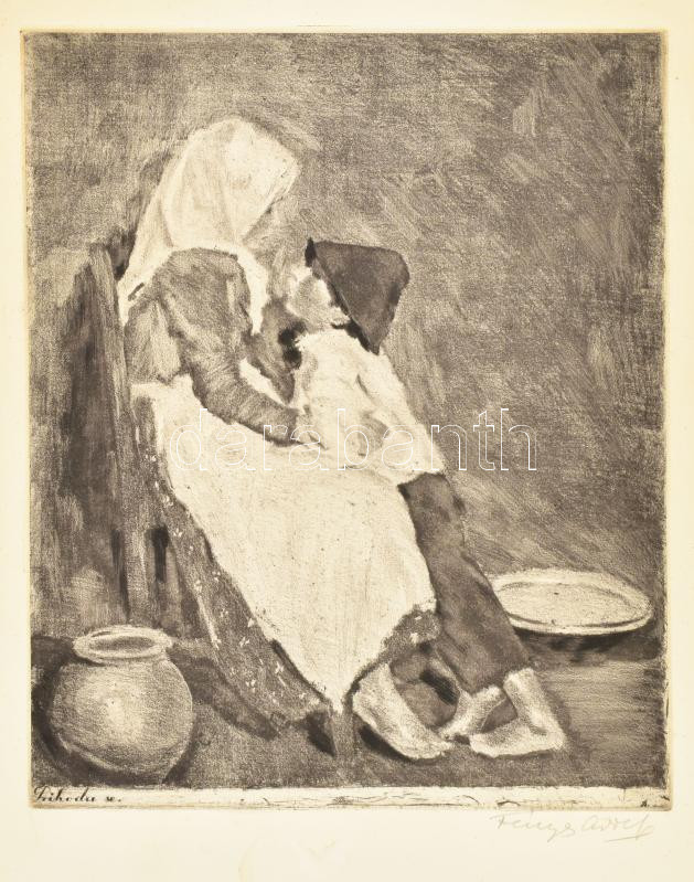 Beschreibung: Fényes Adolf (1867-1945) - Prihoda István (1891-1965): Testvérek. Rézkarc, papír. Jelzett (Fényes Adolf). Lap széle foltos. 26x21,5 cm