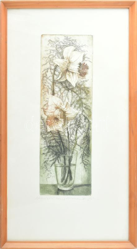 Beschreibung: Hertay Mária (1932-2018): Nárcisz. Rézkarc, papír, jelzett, 40x13 cm