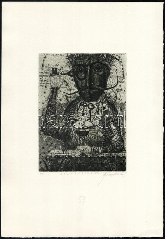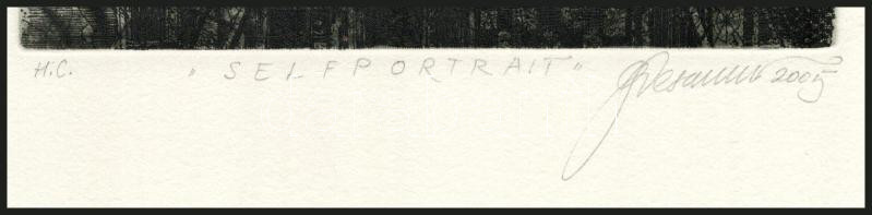 Oleg Denisenko (1961-): Önarckép, 2005. Hidegtű, papír, jelzett, művészpéldány HC jelzéssel. Lap alján a művész szárazbélyegzőjével. 19,5x14,5 cm / Oleg Denisenko (1961-), Ukrainian artist: Self-portrait, 2005. Etching on paper, signed, Artist's Proof HC. With the artist's stamp on the reverse. 19,5x14,5 cm