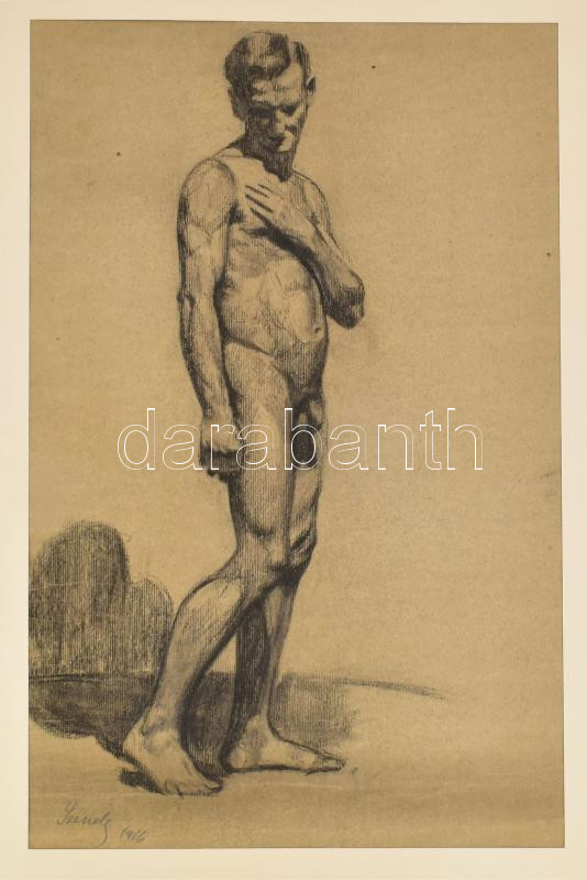 Szende Dezső (1887-): Álló akt. Szén, fedőfehér, papír, jelzett, hajtá... https://www.darabanth.com/de/454-Fernauktion/454.0/Gemalde-und-Grafiken/Gemalde-und-Grafiken~500001/Szende-Dezso-1887-Allo-akt-Szen-fedofeher-papir-jelzett-hajtasnyomokkal-paszpartub~II3024027