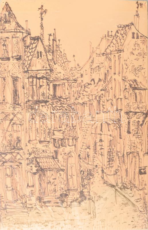 Vöröss Tibor (1911-1999): Városrészlet. Filctoll, papír, 43×30 cm https://www.darabanth.com/de/454-Fernauktion/454.0/Gemalde-und-Grafiken/Gemalde-und-Grafiken~500001/Voross-Tibor-1911-1999-Varosreszlet-Filctoll-papir-43C39730-cm~II2953704