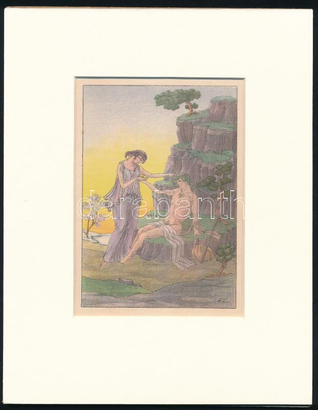 Beschreibung: FL jelzéssel: Antik jelenet. Litográfia, papír. Paszpartuban 13x10 cm