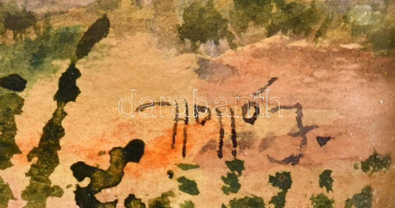 Holló J jelzéssel, 1930 körül működött magyar festő: Szeptember végén. Akvarell, papír. Hátoldalán Műcsarnok Őszi Tárlat 1931 raglapjával. Üvegezett, korabeli, kissé sérült fakeretben. 27x38 cm