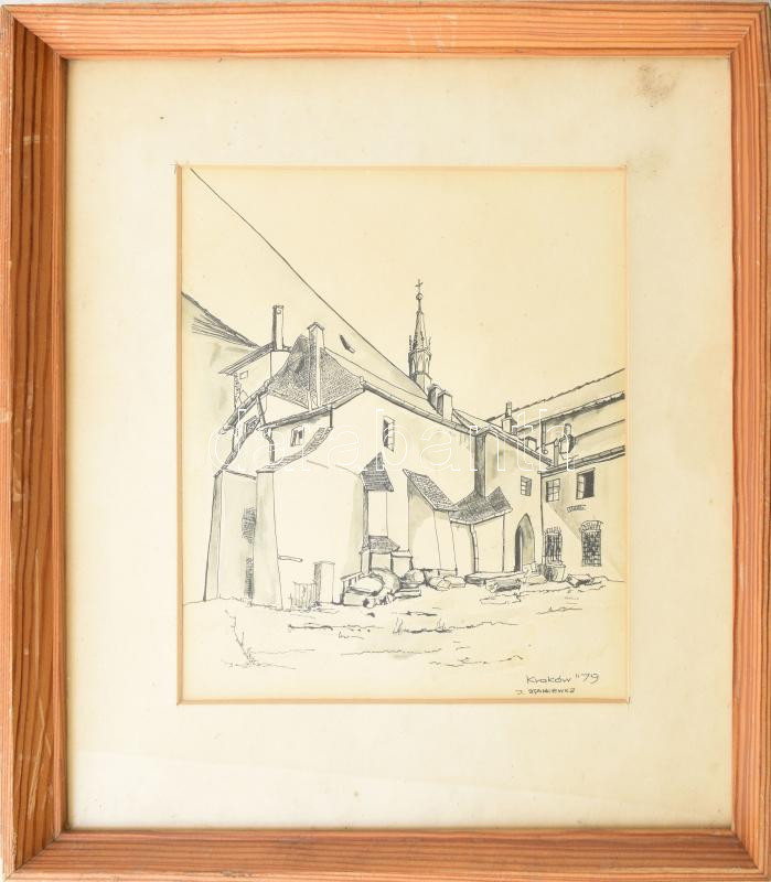J Stankiewicz jelzéssel: Krakkói részlet. Tus, papír. Üvegezett fakere... https://www.darabanth.com/de/454-Fernauktion/454.0/Gemalde-und-Grafiken/Gemalde-und-Graphic-quot-signiertquot-quot-ohne-Signquot-~500002/J-Stankiewicz-jelzessel-Krakkoi-reszlet-Tus-papir-Uvegezett-fakeretben-22x18-5-cm~II3024244