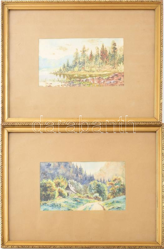 Jelzés nélkül, 2 db mű: Vízparti táj és Hegyvidéki táj. Akvarell papír... https://www.darabanth.com/de/454-Fernauktion/454.0/Gemalde-und-Grafiken/Gemalde-und-Graphic-quot-signiertquot-quot-ohne-Signquot-~500002/Jelzes-nelkul-2-db-mu-Vizparti-taj-es-Hegyvideki-taj-Akvarell-papir-jelzett-uvegezet~II3024935