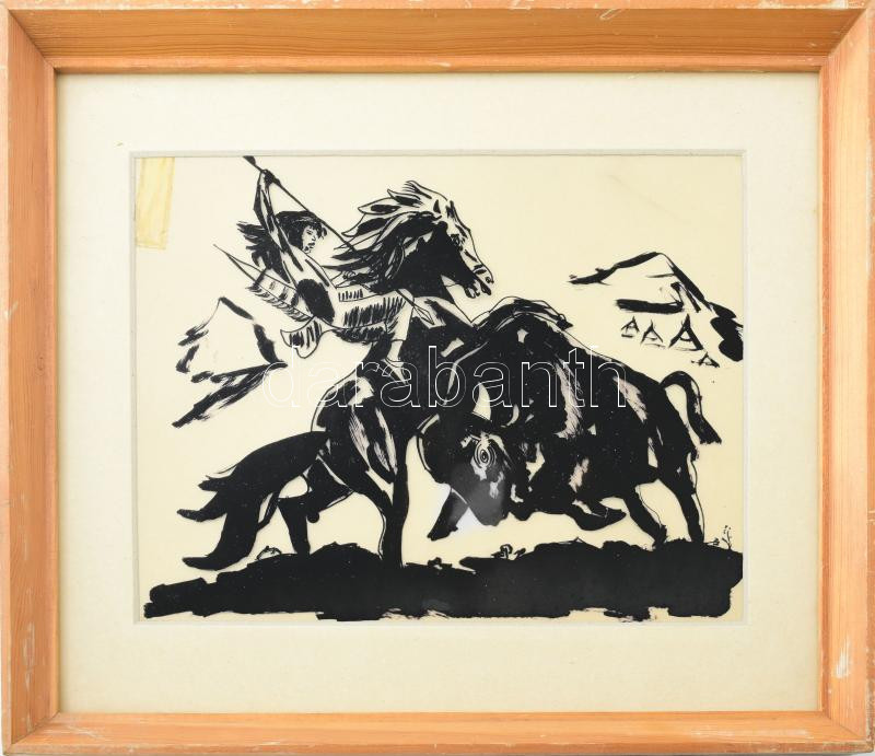Jelzés nélkül: Bölényt vadászó indián. Tus, papír, Üvegezett keretben ... https://www.darabanth.com/de/454-Fernauktion/454.0/Gemalde-und-Grafiken/Gemalde-und-Graphic-quot-signiertquot-quot-ohne-Signquot-~500002/Jelzes-nelkul-Bolenyt-vadaszo-indian-Tus-papir-Uvegezett-keretben-19x24-cm~II3023283