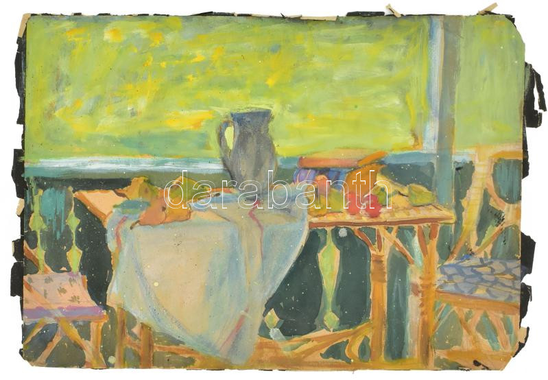 Beschreibung: Jelzés nélkül: Csendélet. Akvarell, papír, sérült, 24x30 cm