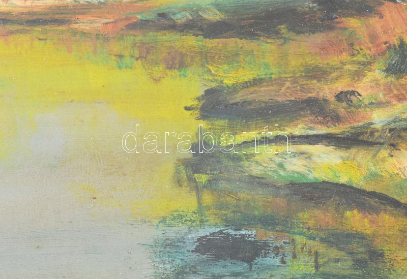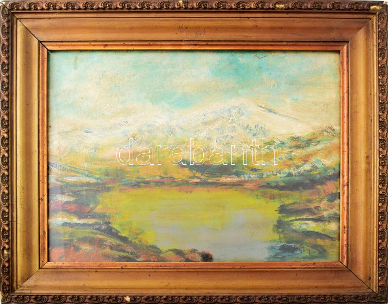 Olvashatatlan (Mednyánszky?) jelzéssel: Hegyvidék. Olaj, karton. Kissé sérült. Dekoratív, üvegezett, sérült fakeretben. 30×40 cm