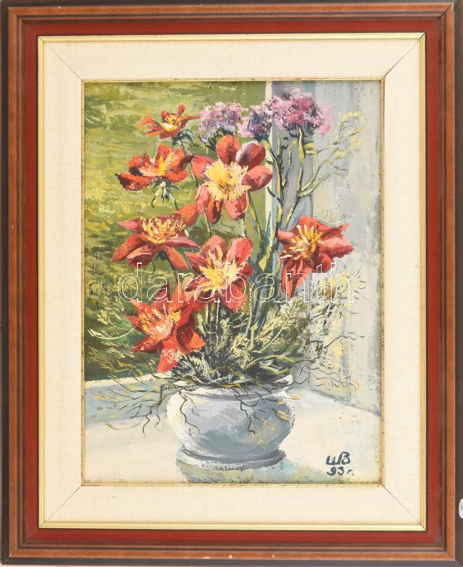 Olvashatatlan cirill betűs jelzéssel: Csendélet. Olaj, vászon. 40x30 cm. Dekoratív, kissé sérült fakeretben.