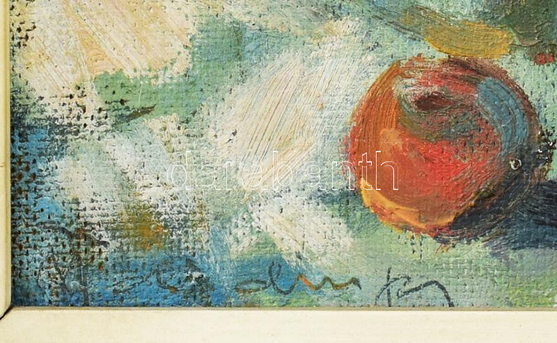 Beschreibung: Olvashatatlan jelzéssel: Csendélet. Olaj, farost. Dekoratív fakeretben. 17x23 cm