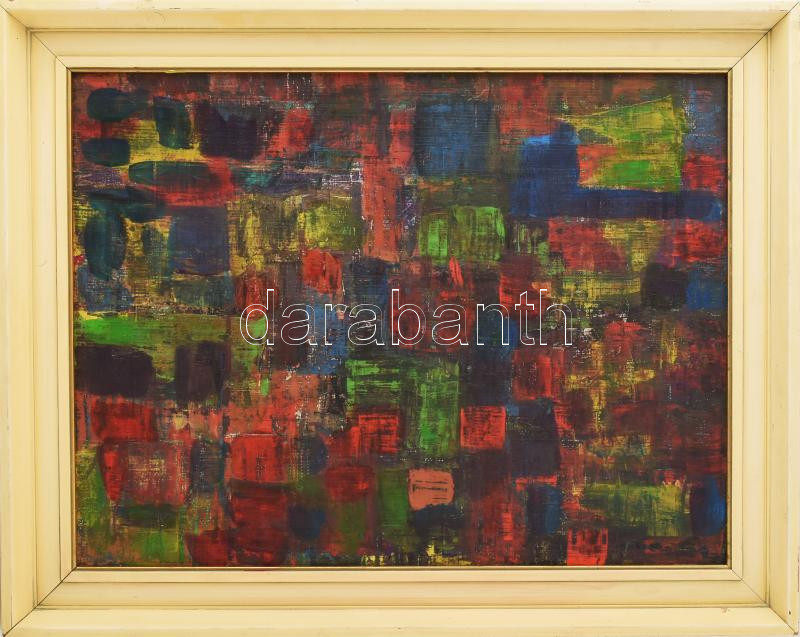 Beschreibung: Olvashatatlan jelzéssel: Színes kompozíció. Olaj, vászon. Fakeretben. 56x43,5 cm