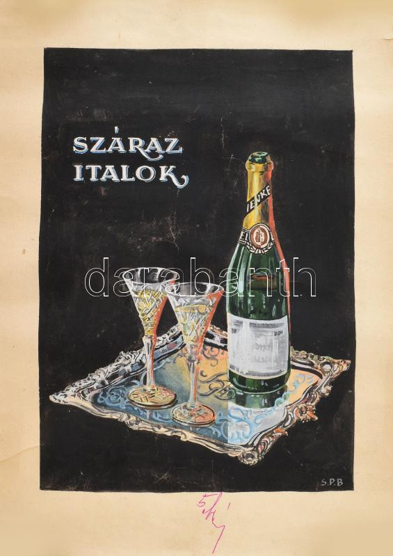 S.P.B jelzéssel: Száraz italok akvarellel készült reklám terv 32x23 cm... https://www.darabanth.com/de/454-Fernauktion/454.0/Gemalde-und-Grafiken/Gemalde-und-Graphic-quot-signiertquot-quot-ohne-Signquot-~500002/SPB-jelzessel-Szaraz-italok-akvarellel-keszult-reklam-terv-32x23-cm-Feltekerve-beszakadasok~II3027388