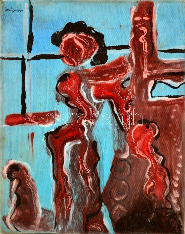 Beschreibung: Szentgyörgyi jelzéssel: Kompozíció. Olaj, vászon, 30×24 cm