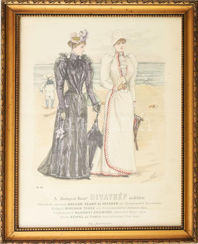 1891 Hölgyek elegáns ruhában és napernyőkkel, a "Budapesti Bazár&... https://www.darabanth.com/de/454-Fernauktion/454.0/Gemalde-und-Grafiken/Stich~500004/1891-Holgyek-elegans-ruhaban-es-napernyokkel-a-Budapesti-Bazar-divatkep-melleklete-Szin~II3009838