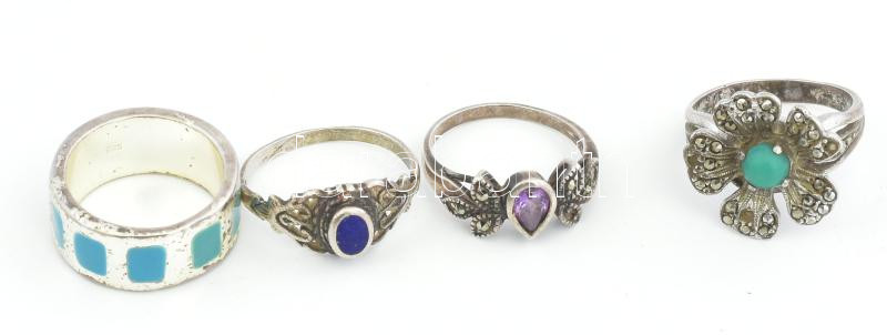 Beschreibung: 4 db ezüst (Ag) gyűrű kő befoglalásokkal br 15,9 g