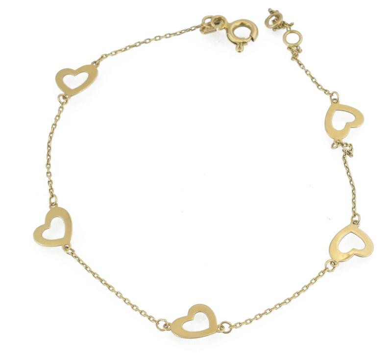 Beschreibung: Arany (Au) 14K szívmintás karkötő, jelzett, h: 17,5-19,5 cm, nettó: 0,9 g