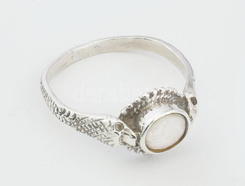 Ezüst (Ag) gyűrű gyöngyház díszítéssel, jelzett, méret: 50, bruttó: 1,... https://www.darabanth.com/de/454-Fernauktion/454.0/Juwellen-und-Kunstobjekte-aus-Edelmetall/Juwellen-und-Kunstobjekte-aus-Edelmetall~2000023/Ezust-Ag-gyuru-gyongyhaz-diszitessel-jelzett-meret-50-brutto-1-5-g~II3030660