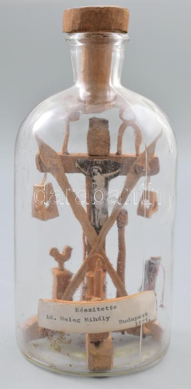 Beschreibung: 1975. id. Meleg Mihály türelemüveg kálváriajelenettel, m: 22,5 cm