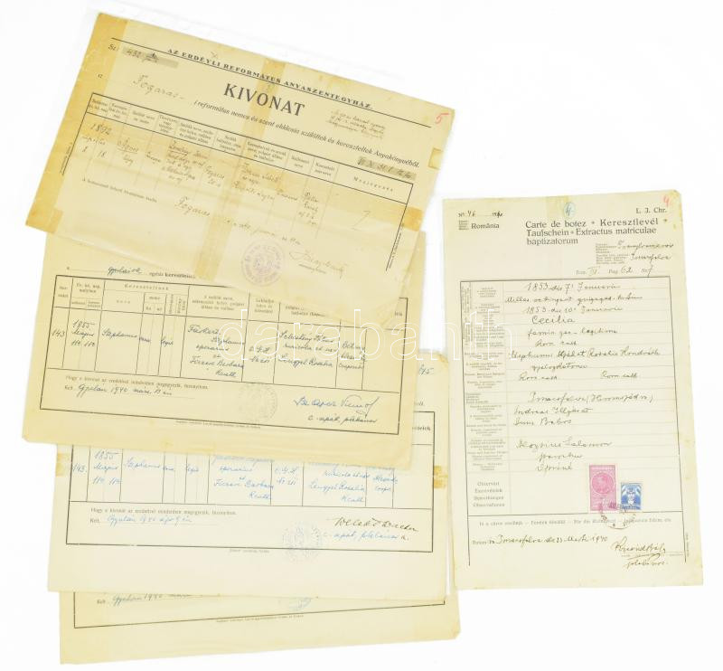 1940 Anyakönyvi kivonatok (keresztlevelek), 5 db, közte Erdélyi Reform... https://www.darabanth.com/de/454-Fernauktion/454.0/Kunst-Dokumente-andere-Sammelgebiete/Dokument~500020/1940-Anyakonyvi-kivonatok-keresztlevelek-5-db-kozte-Erdelyi-Reformatus-Anyaszentegyhaz-alt~II2998989