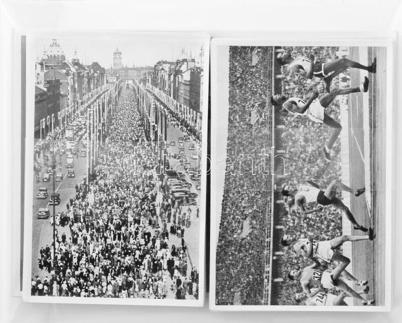 1936 Gyűjtőképek a Berlini Olimpiáról 1-80-ig sorszámozva, 20 kép a megnyitóról, 60 kép az atlétikai versenyekről 17x12 és 12x8 cm Hitler némelyik képen