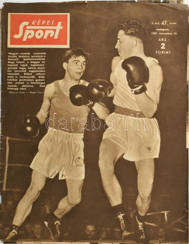 1955 Képes Sport II. évf. 47. száma, rajta Nagy József és Paul Schnugg... https://www.darabanth.com/de/454-Fernauktion/454.0/Kunst-Dokumente-andere-Sammelgebiete/Drucksachen~1500012/1955-Kepes-Sport-II-evf-47-szama-rajta-Nagy-Jozsef-es-Paul-Schnugg-okolvivo-merkozes~II3013456